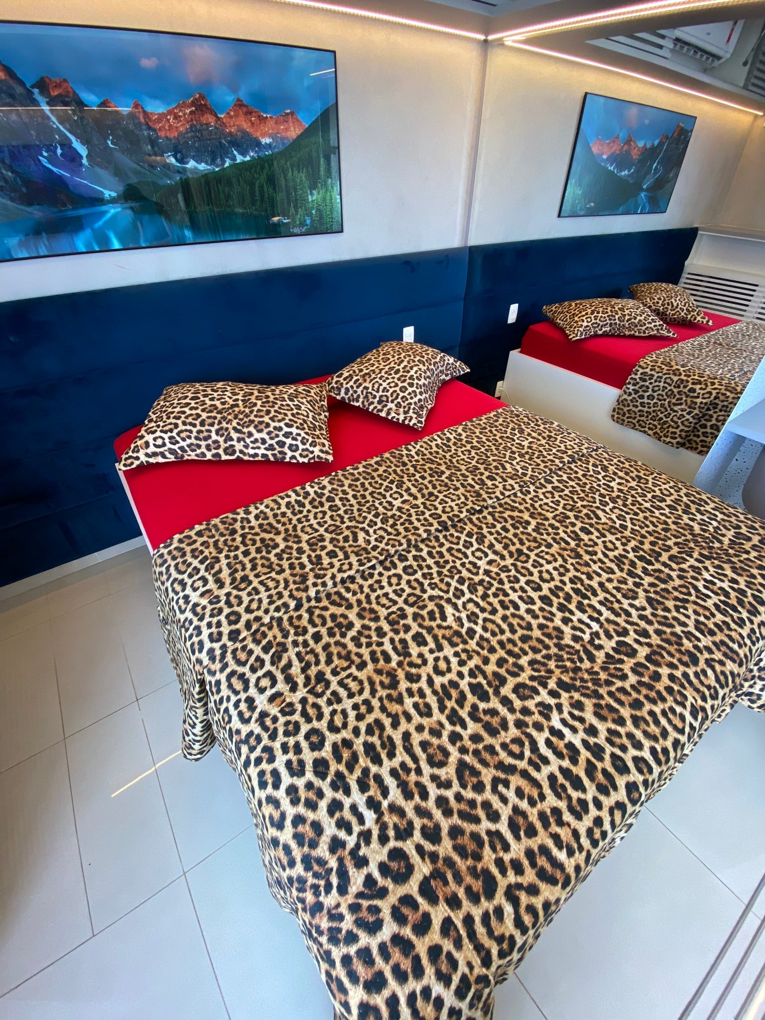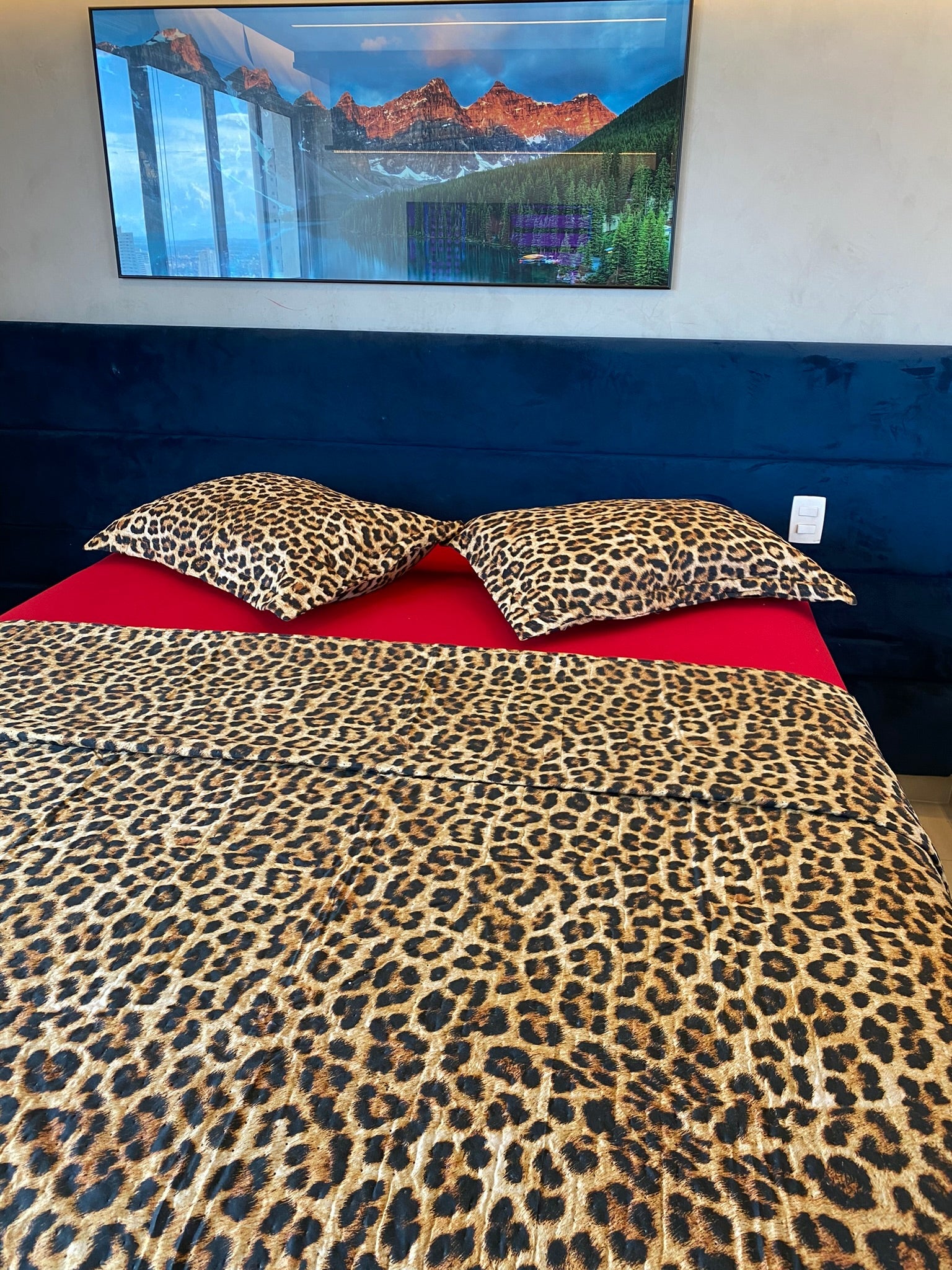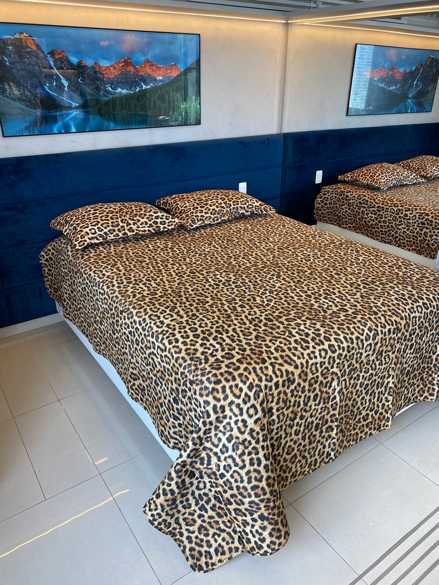 Cobre Leito Solteiro, Poa Estampa de Onça, 100% Poliéster, Casal