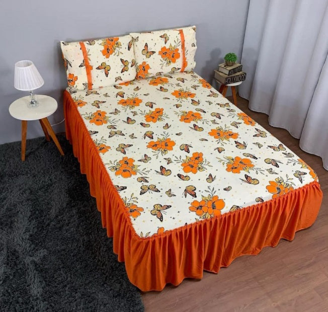 COLCHA BABADO HELANCA, CASAL, FLORAL, LARANJA