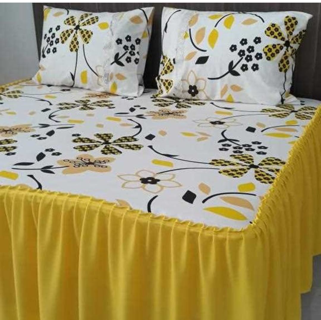 COLCHA BABADO HELANCA, KING, FLORAL, AMARELO